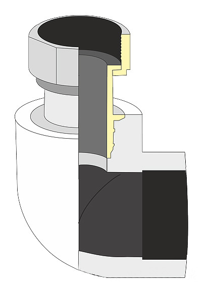 Коліно з гайкою призначене для розбірного різьбового з'єднання з одночасною зміною напрямку траси трубопроводу. Виробник рекомендує використовувати коліно з переходом та накидною гайкою лише для холодної води. Не можна використовувати для опалювальної мережі та для подачі гарячої води (якщо така потреба виникає – слід використовувати металеві штуцери).