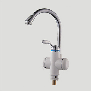 Водонагрівач на кран для проточної води має специфічну форму і зовнішній вигляд. Саме стандартний металевий блиск і білого кольору вставки дозволяють застосовувати водонагрівача в якому вже створеному інтер'єрі.